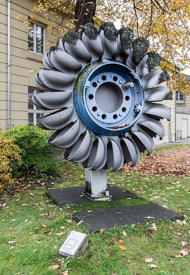 The Pelton wheel or Pelton turbine is a type of impulse turbine used in hydroelectric power plants. It is a tangential flow turbine, meaning the water strikes the runner (the rotating part) at a tangent. It is best suited for applications with a very high head (the vertical distance the water falls) and a low flow rate.