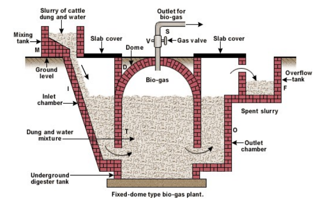 Diagram of fixed dome type biogas plant: